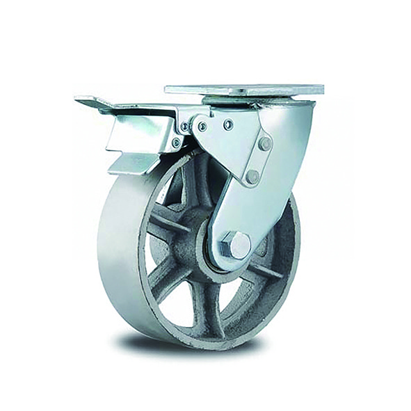 Heavy Duty Iron Castor Wheel with brake and plate. Available in two sizes.