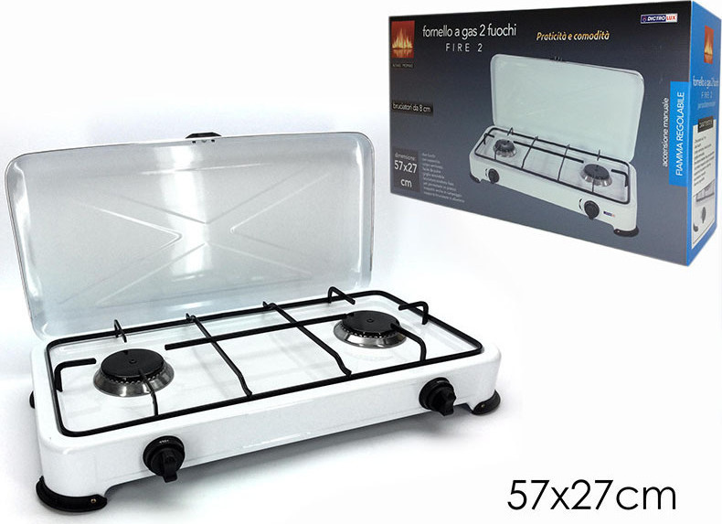 Viopsarp Douple White Gas Stove 57x27cm ideal choice for cooking in the pan and especially for recipes cooked in a wok pan.